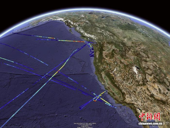 ( B0 ~7 Z$ V) G: _+ c$ c/ i! Q 本次研究的加州近海通过SeaFlow流式细胞仪测量的浮游植物生物量分布(图片来自Francois)。施普林格·自然 供图