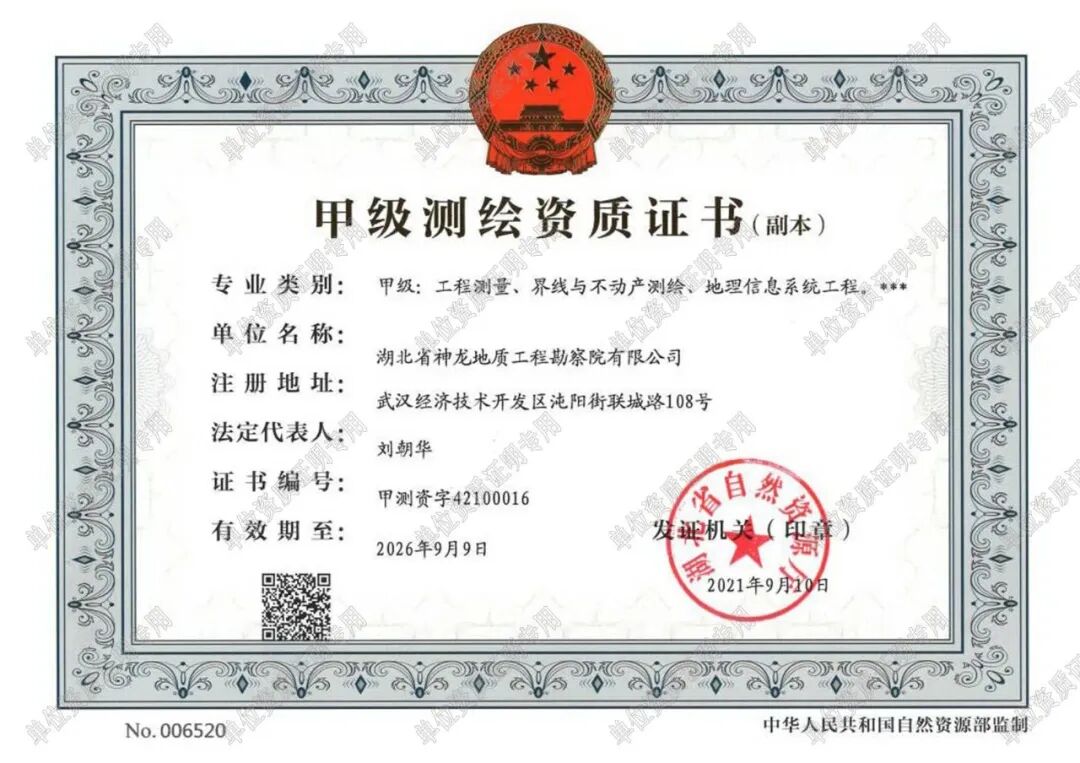 * {! L1 Z2 t) X8 @! z 二八载筚路蓝缕,二八载拼搏奋进,乘着改革开放的春风,顺应市场需求,1995年2月,成立湖北省地下管网工程勘测公司,1998年7月并入湖北省神龙地质工程勘察院,组建“管线工程处”,引进了一批先进的全站仪、管线探测仪、测斜仪,全力融入全国基础设施建设发展大局,开辟了天然气、电力、地铁市场领域;2011年3月将管线探测工程处从神龙市政公司划分出来,调整为湖北省物勘院直管单位,开启了做大管线探测产业规模的探索之路。2015年11月,将“管线工程处”变更为“测绘地理信息中心”,明确管网探测、工程测绘监测多元化发展定位;2017年1月,取得国家测绘地理信息局地理信息系统工程和地籍测绘甲级资质,核心竞争力持续增强,全面推进地理信息服务;2018年2月对全队的测绘资源进行整合,将队属神龙勘察院测绘工程处整体并入队属测绘地理信息中心,做大做强测绘地理信息产业,年产值迈上6000万大关。2023年7月荣获中国地理信息产业“最具活力中型企业”“最具成长性企业”双称号。
