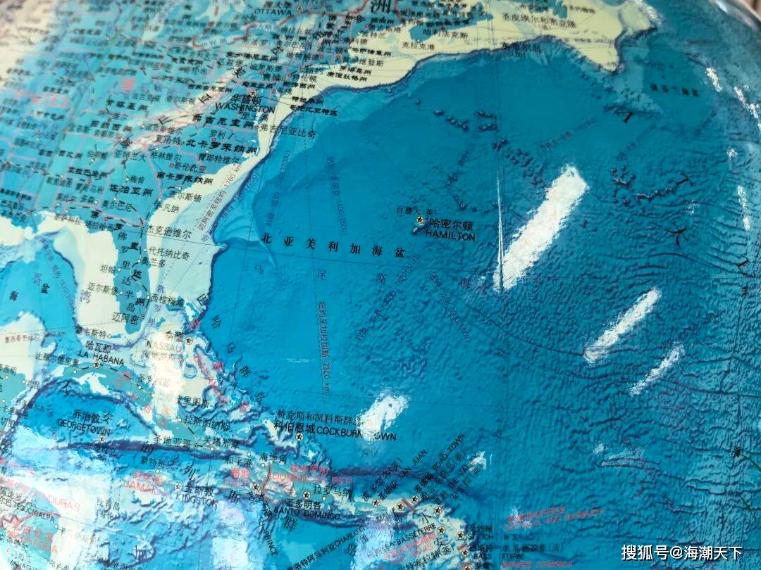 (图文无关)上图中有一个马尾藻海(Sargasso Sea),是一个非常独特的地理存在。位于北大西洋中部,百慕大群岛就在它的西部边缘。它不是由陆地包围的,而是由四股强大的环流(如墨西哥湾暖流等)围成的一个顺时针旋转的巨大水域。你可以把它想象成大西洋中心一个相对平静的“大漩涡”,面积约有美国领土的三分之二那么大。在2008年以前,马尾藻海几乎是全球唯一能观察到大规模马尾藻集聚的地方,因此该海域一直被视为大型漂浮藻类的典型栖息地。但是后来,马尾藻已经打破了原有的地理边界。2008年是一个转折点。上图出自一个地球仪(出处:ISBN 978-7-5030-2697-3/K·295 GS(2012)1091号) ; b2 z( q" j3 y* h7 P$ m1 K/ W