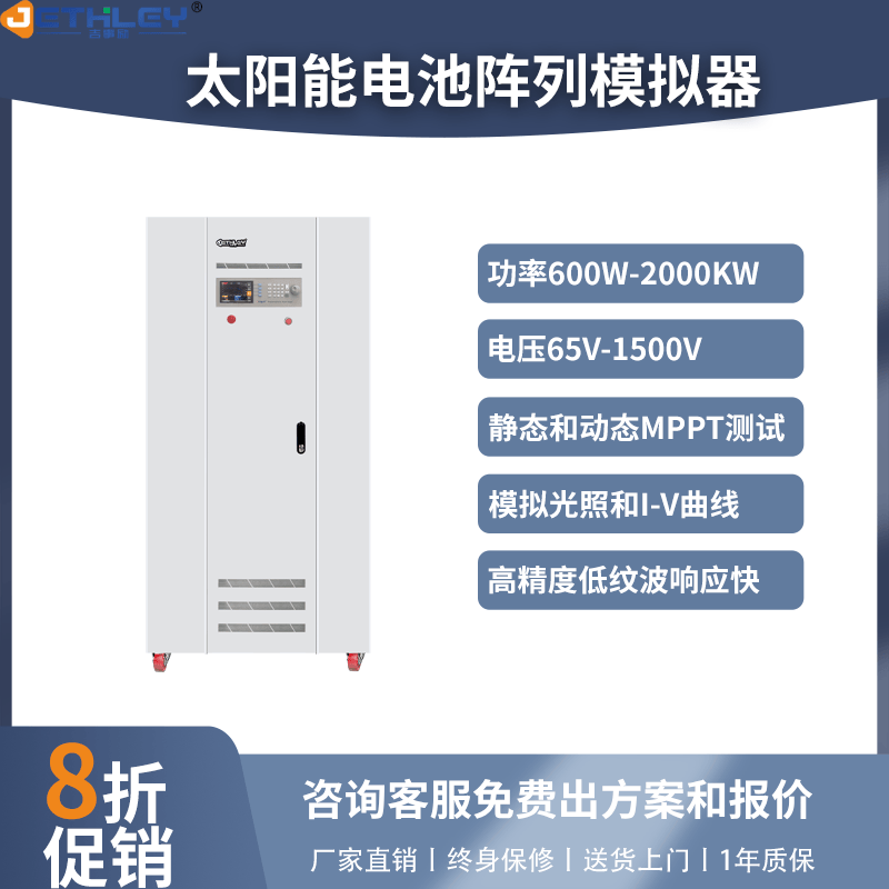 6 K. |& C. M3 x) B 在工业生产中,光伏模拟器同样发挥着重要作用。制造商可以使用光伏模拟器对生产线上的光伏电池进行快速且一致的质量检测。通过标准化的测试流程,可以确保每一块光伏电池都达到预期的性能标准,从而保证产品的整体质量和市场竞争力。此外,光伏模拟器还可以用于新产品的研发阶段,帮助工程师优化电池设计,提高转换效率和降低成本。 " r' A9 j' H( L5 j9 i1 S3 ~* t
