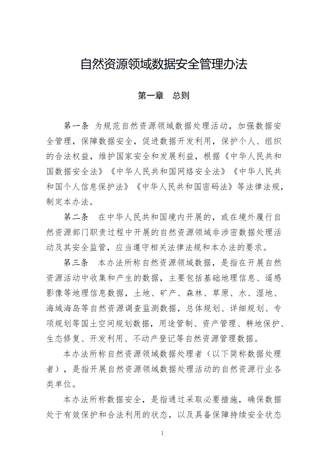 $ Z9 @( A4 H6 i" H* E ]  自然资源部关于印发《自然资源领域数据安全管理办法》的通知8 [' L8 H$ D% h3 W2 ~