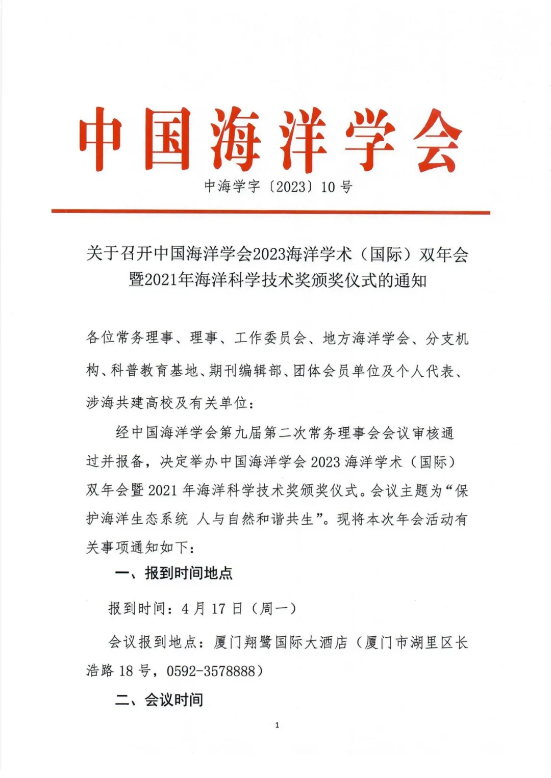 中国海洋学会将于4月18日在厦门举办2023海洋学术(国际)双年会暨2021年海洋科学技术奖颁奖仪式。会议主题为“保护海洋生态系统 人与自然和谐共生”。其中,第三分会场“自主创新发展,引领海洋测绘新时代”由中国海洋学会海洋测绘专业委员会承办,以专家报告的形式进行海洋测绘新时代、新发展、新创新的探讨。 * o6 w3 r$ x( K4 r* q/ c