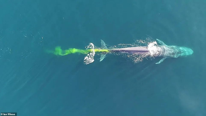 0 Z) F- C0 r. {8 G9 ?" X8 j 人们拍摄到一条鲸鱼正在排出荧光绿色的便便!|参考资料1