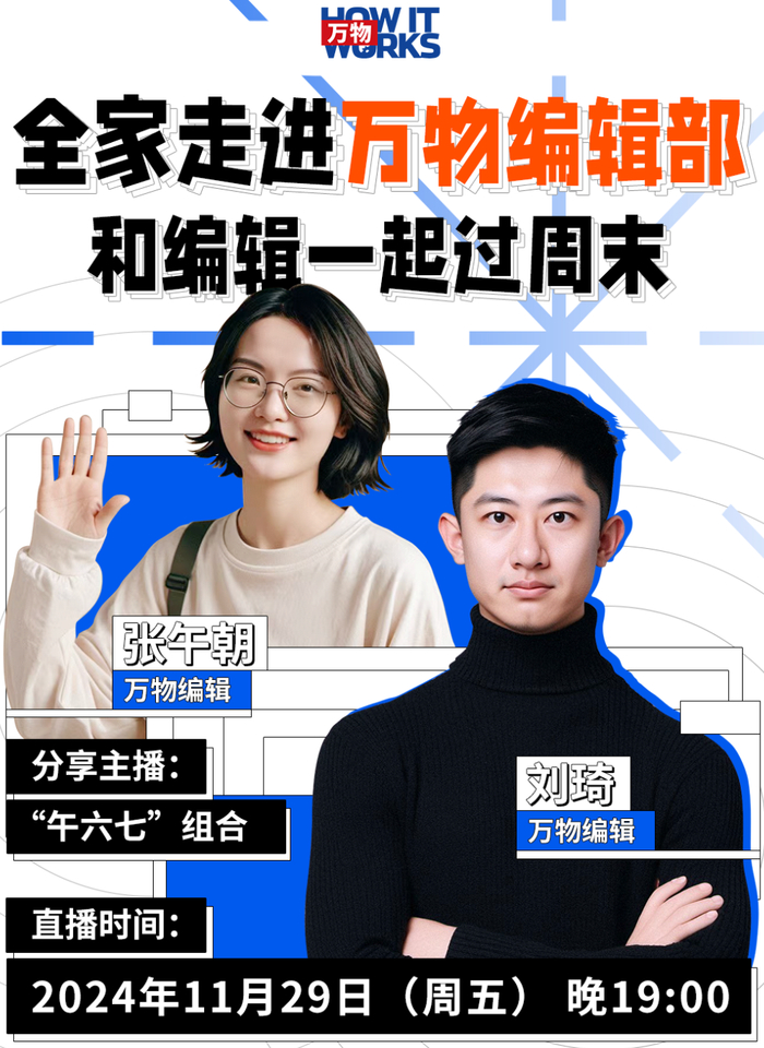 " q, M8 o5 U( `+ [! V 总之,各位大朋友和小朋友不要错过这次直播。不仅能走进《万物》编辑部,和编辑面对面,了解满满的科学干货!你还能领取各种优惠和丰富好礼!
