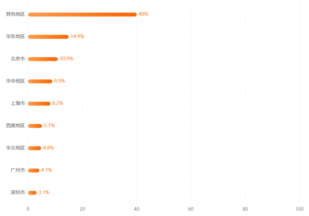 5 M* F/ x8 B L) v8 W5 z1 H6 s3 ~ 就业地区分布