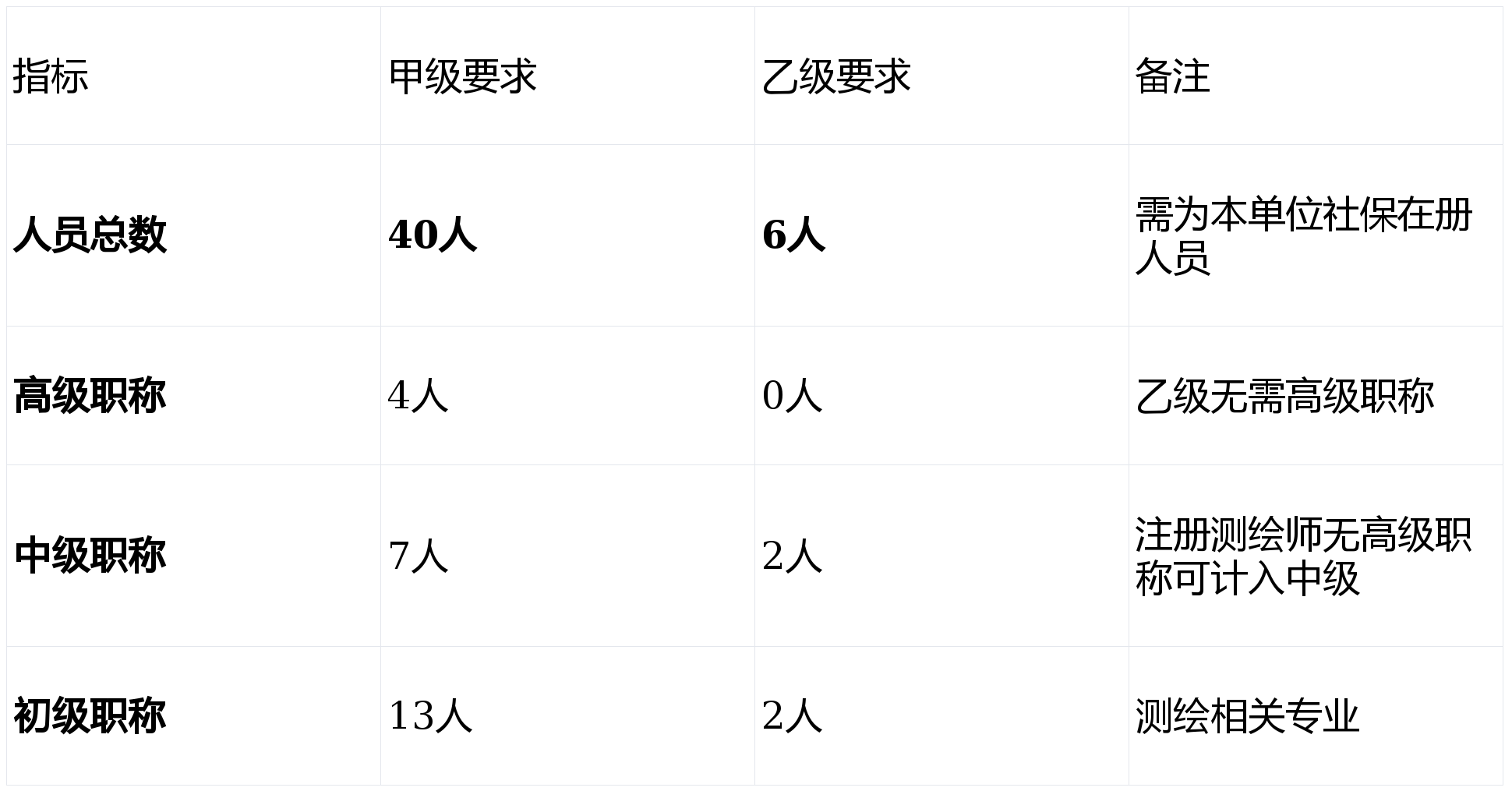 # H+ ?& V- U/ i! ~. @ 特别提示: 专业要求:人员专业需属于测绘工程、摄影测量与遥感、地理信息系统等测绘及相关专业。 退休人员:甲级最多计入2名,乙级最多计入1名退休专业技术人员。2. 技术装备要求(硬门槛)