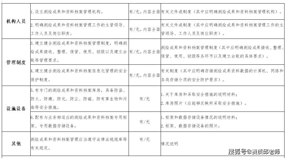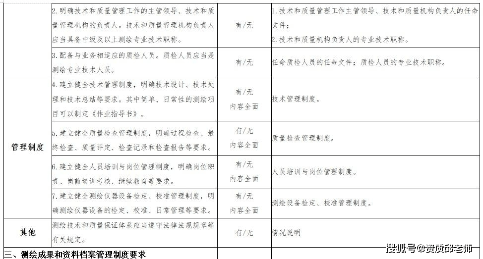 4、有健全的技术和质量保证体系、安全保障措施、信息安全保密管理制度以及测绘成果和资料档案管理制度