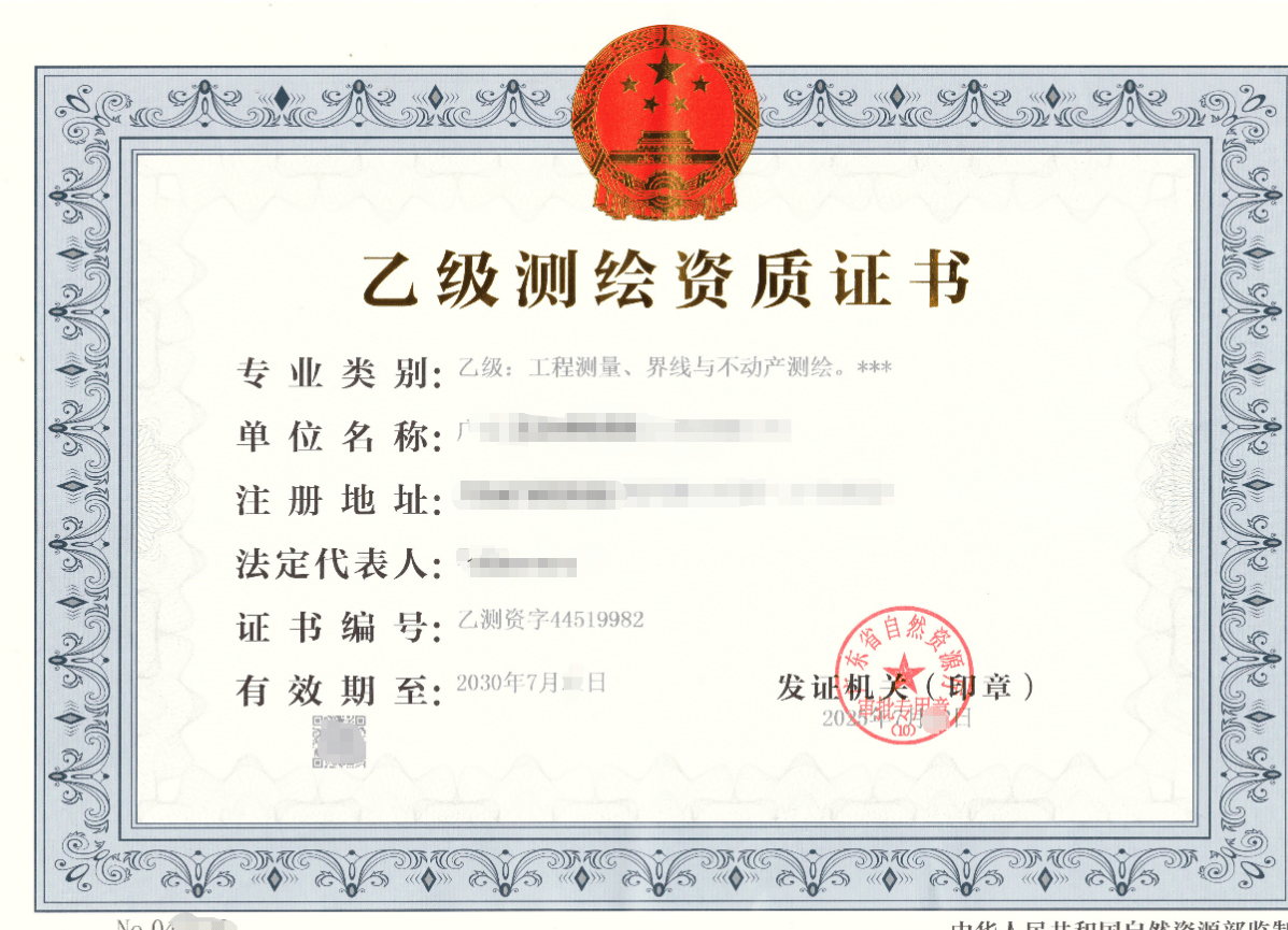 目前申请已实现全程线上办理,主要步骤和官方渠道如下: 系统准备与注册:登录全国测绘资质管理信息系统进行单位注册。在线填报与提交:在系统中,按指引填写信息,并上传所有申请材料的原件扫描件。 主要材料包括:法人资格证书、技术人员材料、技术装备所有权材料、各类管理制度材料等。审批与发证: 审批机关:乙级资质通常由省级自然资源主管部门负责审批。部分省份可能将受理和审查工作委托给市级部门。 审批时限:审批机关自受理之日起,应在15个工作日内作出决定。 部分地区公示的流程总时限可能更短,例如有地区公示全流程约为19个工作日。 获取证书:审批通过后,可在线下载、打印与纸质证书具有同等法律效力的测绘资质电子证书。四、重要注意事项