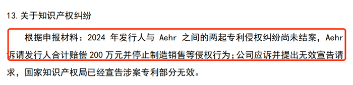 ( T! H% [1 U, }7 S& _) R 招股书显示,2024年9月,Aehr以联讯仪器侵犯其在中国申请的两项专利权,向苏州市中级人民法院提起诉讼。2024年10月,苏州市中级人民法院予以立案。 # Y6 t/ k# U* z6 ^) k! _