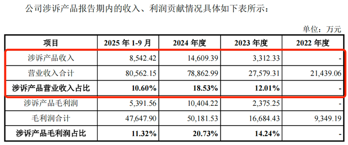 而这两项涉诉所涉产品,对联讯仪器的影响并不算低。2023年至2025年前9月,公司涉诉产品收入分别为3312.33万元、1.46亿元和8542.42万元,占营业收入的比例分别为12.01%、18.53%和10.60%。