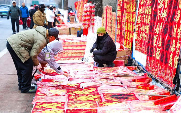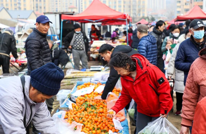 作为中心城区规模较大的集市之一,张村大集每逢农历二、五、七、十开集。新鲜水灵的瓜果蔬菜、鲜活肥美的海鲜珍品、香气扑鼻的炒货干果、红彤彤的春联福字……各类商品一应俱全,浓浓的年味儿顺着摊位蔓延,吸引着周边群众纷纷赶来,沉浸式选购心仪的年货。