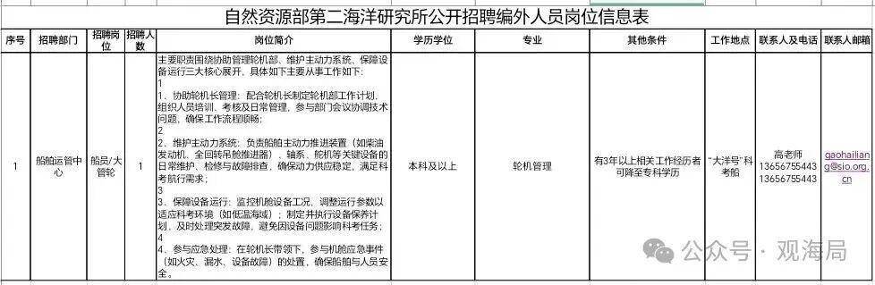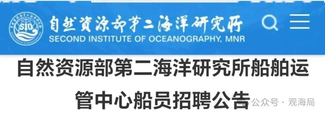 4 m! b7 q7 H& n& V/ G$ O9 u 为服务国家海洋科考事业,充实科考船一线保障力量,自然资源部第二海洋研究所船舶运管中心面向社会公开招聘编外船员。有关事项公告如下。 # ?8 ?( F1 A# G" x