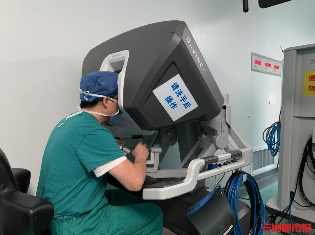 中南大学湘雅医院胃肠外科主任刘合利在使用达芬奇手术机器人为患者开展手术。