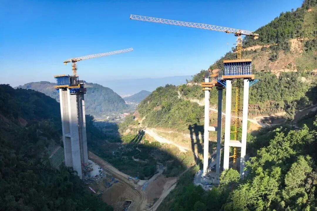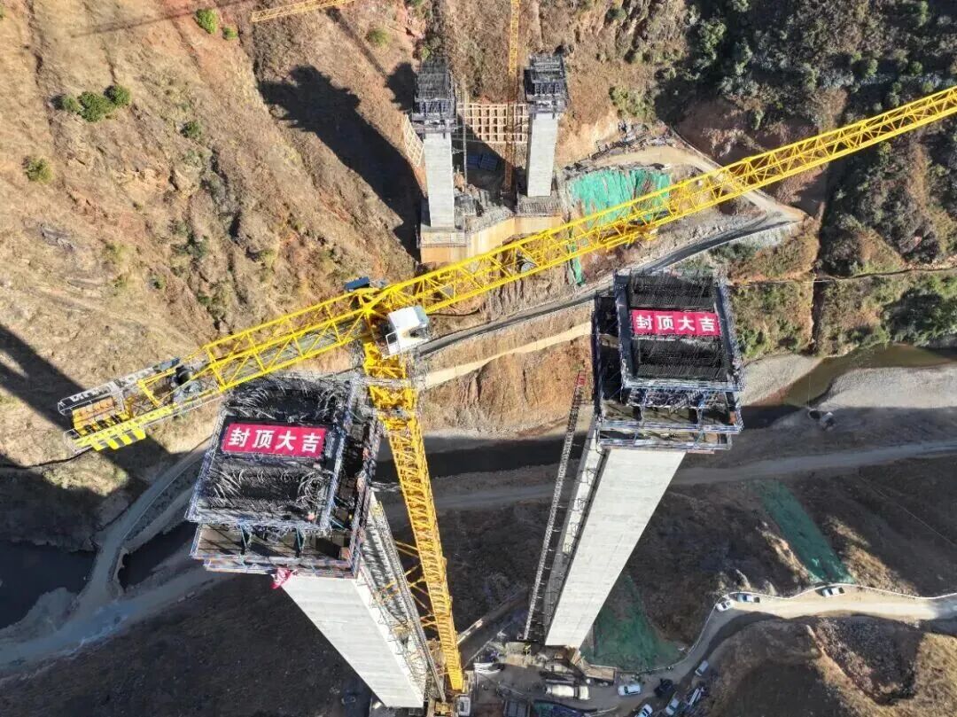 日前,元大高速第一高桥——车良地1号大桥右幅5号主墩顺利封顶。该主墩高达113米,是项目控制性工程核心节点。车良地1号大桥左幅长567.6米、右幅长557.6米。