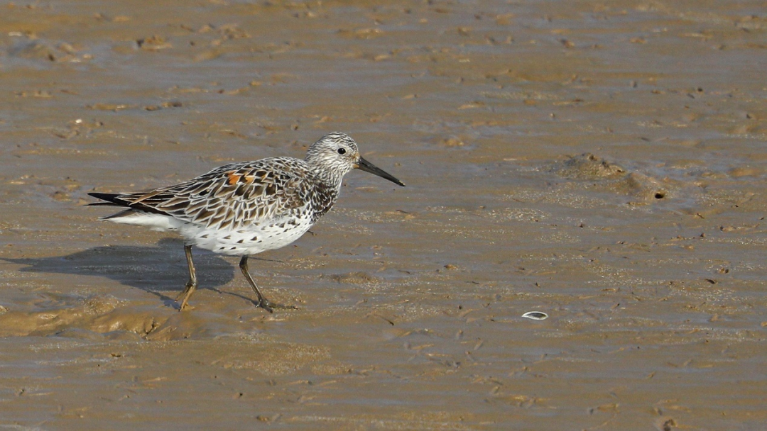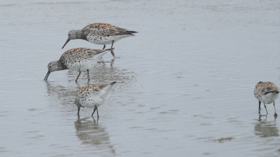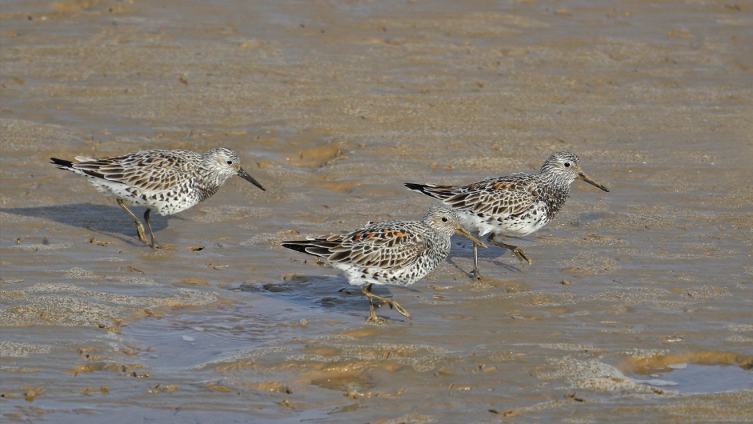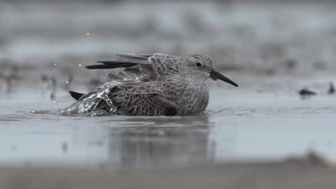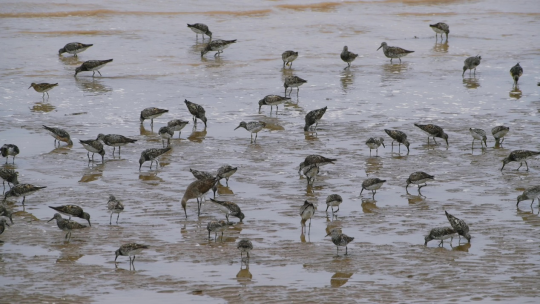 大滨鹬,鸻形目鹬科小型涉禽,国家二级重点保护野生动物,世界自然保护联盟红色名录濒危物种,种群数量急剧下降。