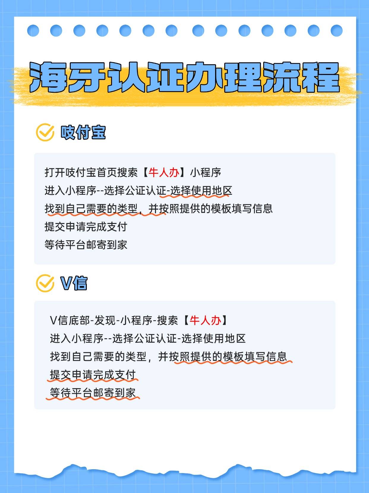 ( |4 P1 ~: n% i- b2 s 海牙认证是《海牙公约》成员国间,对公文书签字和印章真实性的确认机制,简单说就是跨国文件的“国际通行证”,证明官方签章有效,无需复杂领事双认证,方便在成员国流通,通过支付宝搜索牛人办小程序就能办理。 & v+ M/ J% p0 ?' B6 o9 {6 j4 R( P- ]! K