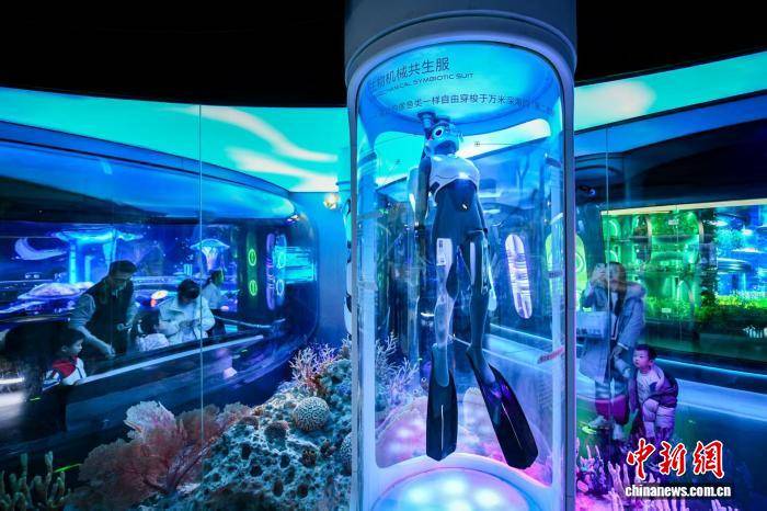 展厅策展紧扣海洋强国与生态保护主题。在“海洋时空切片”展区,基于权威气候模型与数据,直观展现人类不同选择对海洋未来的深远影响;而在“深海空间站”“漂浮城市”等区域,则呈现了海洋能源开发、生态修复、智慧居住等前沿科技构想,引导观众从“海洋旁观者”转变为“人海共生共建者”。