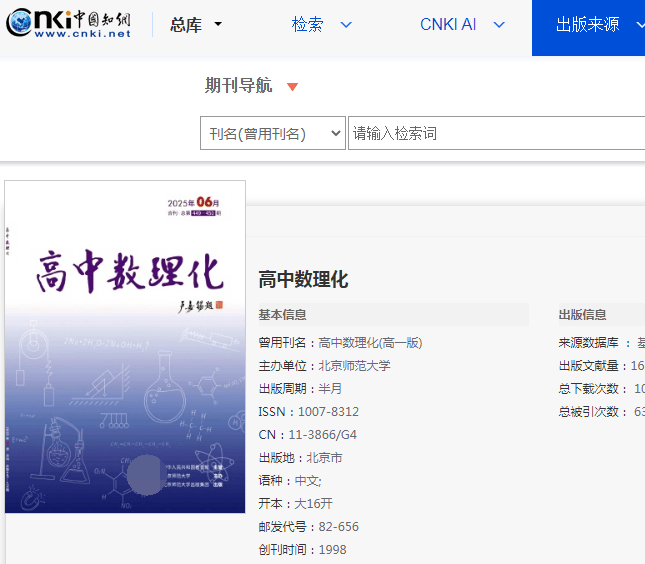 《高中数理化》杂志依托北京师范大学教育资源及各附属中学的先进教学成果,聚焦高中数理化教育教学。