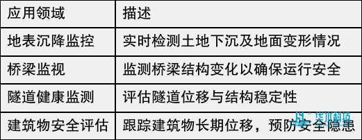 这项技术适合用于那些领域? 该技术广泛应用于地质灾害监测、桥梁与隧道监控、以及建筑物结构健康评估等领域。