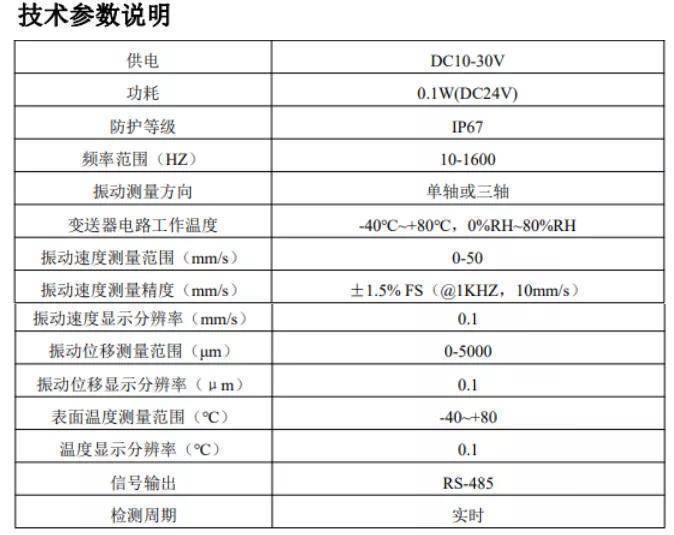 & a% m1 C% P# n0 d$ k5 ] 温度振动传感器的振动速度量程一般默认0-50mm/s,如果测量的设备需要的振动速度量程与此量程不符,还可以选择其他任意量程。