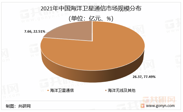 其中海洋卫星通信是我国海洋通信最大的细分产业,2021年海洋卫星通信市场规模为26.37亿元,占77.49%;