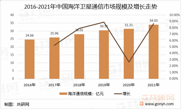 2016-2021年中国海洋卫星通信市场规模及增长走势