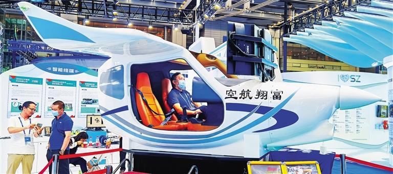本届高交会上,市民在体验由深圳富翔航空科技有限公司研发的六轴动态飞行模拟器。该飞行器运用AR技术,为观众带来沉浸式航空体验。 / t3 @! f/ X. h0 b* T