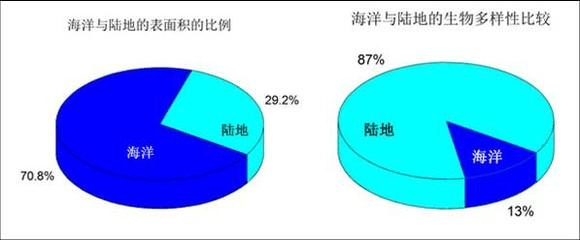 然而,海洋生物的生物量并不少。毫无疑问,海洋环境在生命的历史中发挥了决定性的作用。它如今仍然庇护着不少古老类群,并可能具有最大的生物量。例如,海洋浮游植物可以占到整个地球上的碳基生物量的一半以上。与海洋的生物多样性比较,今天生活在陆地上的不同的生物物种是海洋的6至7倍。令人惊讶的是,陆地上高水平的物种多样性是在一个相对较短的时间且相对更小的区域内& Z6 i8 o: ?% r7 a% o- G3 i