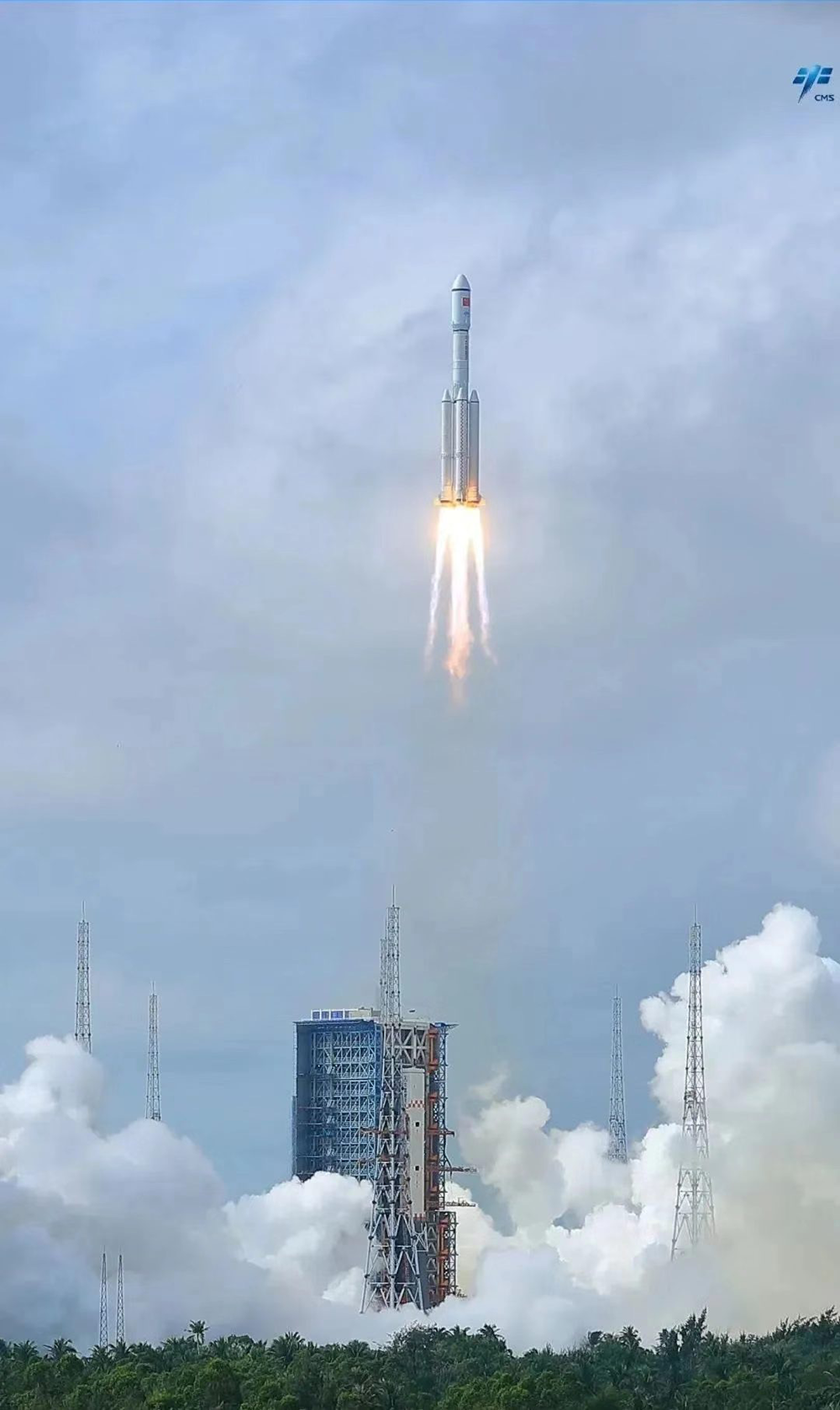 ( j6 Y8 V/ `* L# f 天舟五号货运飞船发射升空,飞往中国空间站。本文图片 中国航天科技集团供图 . R* w+ ], `. u4 x