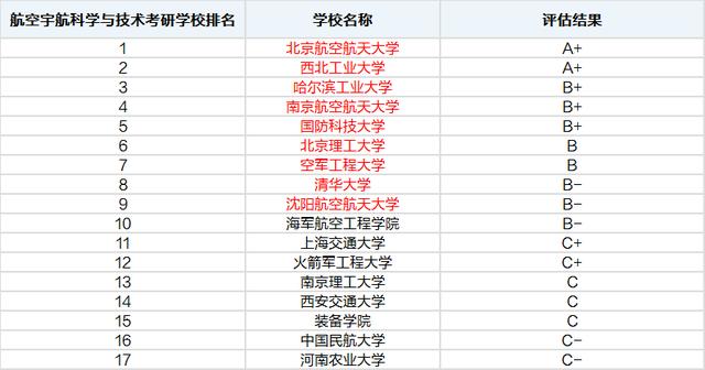 根据教育部学位与研究生教育发展中心最新发布的第四轮航空宇航科学与技术学科评估结果可知,全国共有17所招收航空宇航科学与技术专业研究生的学校参与了排名,其中排名前2的大学是北京航空航天大学、西北工业大学。 + z. L% {3 `1 ?6 o. T5 N