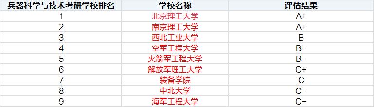 - T8 f1 \- V1 `8 A/ c4 h7 }- X 下面是兵器科学与技术专业学科考研学校排名具体榜单,供大家参考!