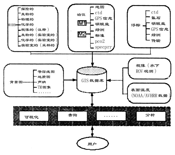 : n$ R v* h! i* G目前,国内已经有一些研究单位在进行尝试性工作。例如,中科院地理所等单位(周成虎等, 1998)近年来在海洋863计划818专题中,通过集成遥感、数据库管理系统、专题分析模型和专家系统,来为海洋渔业开发GIS平台。该渔业GIS由几个子系统组成,主要应用在中国东海海域。