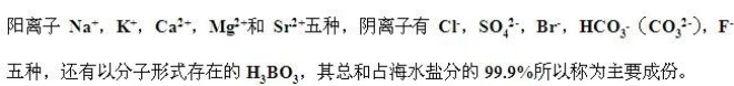 1.[掌握]:海水主要成分的含义