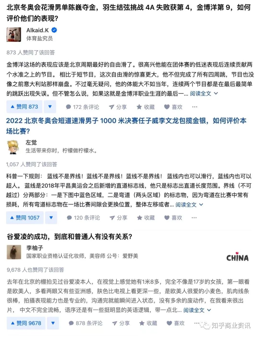 不同于在其他平台上「吃瓜」「追星」,知乎产出了大量专业和全面的内容,吸引了「双奥导演」张艺谋、北京冬奥会——奥林匹克教育、国家体育总局训练局——冠军之路组织委员会等亲自作答,极大满足了观众渴望深度了解赛事的需求。知乎「技战术大师」的美名再度传扬,也让「聊比赛上知乎」深入人心。