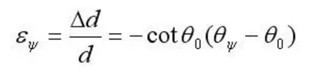 εψ的量值可以用衍射晶面间距的相对变化来表示,且与衍射峰位移联系起来,即: