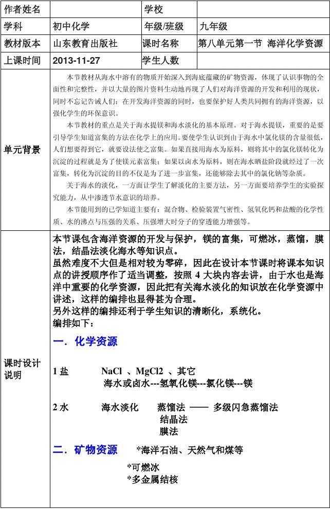 《海洋化学资源》第一课时参考教案解析-海洋仪器网资料库