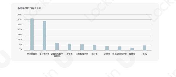 " P& o3 Z$ g7 S7 B3 T' } 2022级海归应届生,商科、金融类专业的比例最高,远远高于排在第三位的计算机专业人数。统计专业的海归人数今年上升很快,这也与最近几年数据分析岗位大火有直接的联系。