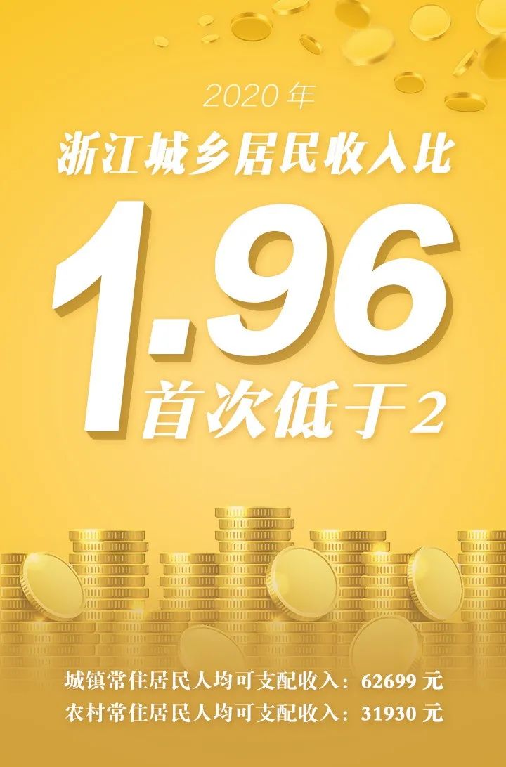 5 O! y# p& l# K7 q) z& K 根据国家统计局浙江调查总队统计,2020年浙江城乡居民收入比为1.96,自1993年以来首次降至2以内,这也是浙江城乡居民收入比连续下降的第8年。