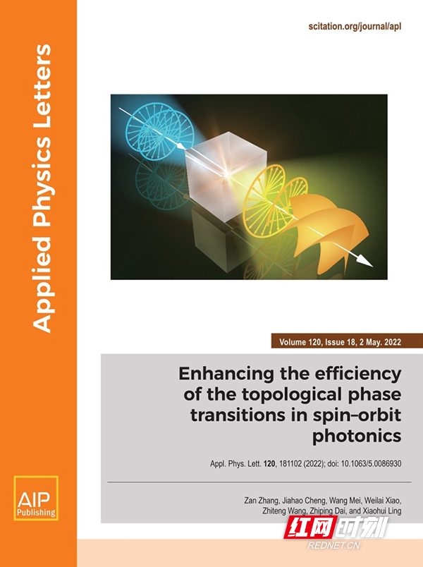 红网时刻衡阳5月11日讯(通讯员 陈灿灿 记者 宋美君)近日,衡阳师范学院 2020级硕士研究生张赞在物理学国际权威期刊Applied Physics Letters以封面论文发表最新研究成果《Enhancing the efficiency of the topological phase transitions in spin-orbit photonics》。衡阳师范学院为该论文唯一署名单位。