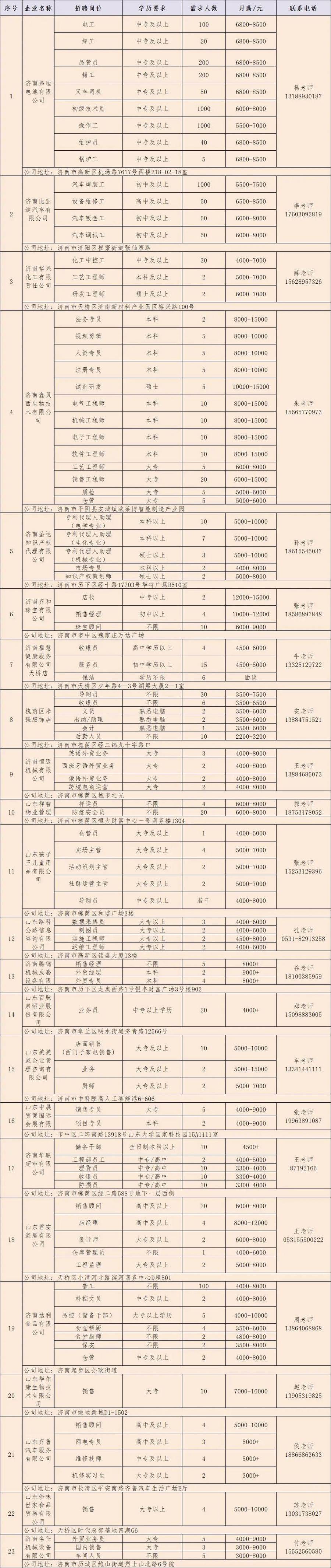 为帮助各类求职者尽快实现就业,满足缺工企业用工需求,充分发挥人力资源社会保障部门保企业用工、稳就业形势作用,积极搭建供需对接平台,推动劳动者实现更高质量就业。由济南市人力资源和社会保障局主办,市公共就业服务中心承办的“综合类网络专场招聘会”于9月4日举办。邀请23家企业参与招聘,提供4300多个就业岗位,招聘信息详情如下: