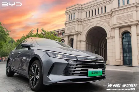 ) `2 T9 Y% K, O2 x: ~8 _; J 驱逐舰05基于比亚迪“海洋美学”设计理念打造,定位A+级轿车,轴距2718mm,与燃油车朗逸相当。驱逐舰05车型定位和配置都会高于比亚迪目前的所有紧凑级轿车,通过更高的车型定位以及更丰富的车型配置,攻入以合资车型为主的紧凑级轿车市场。
