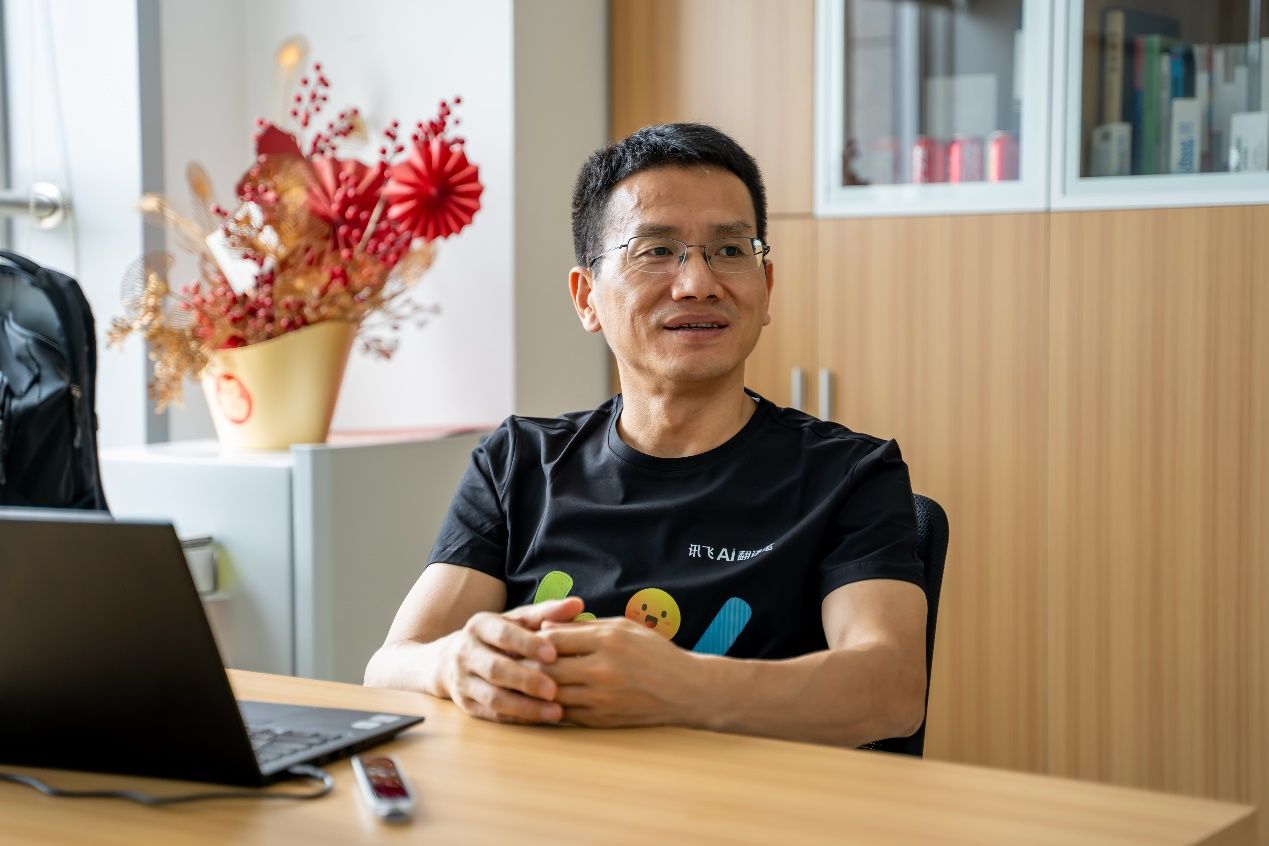 科大讯飞副总裁章继东在接受采访。 5 o6 I8 {, M4 p, V5 w7 D# D( ~/ C# _