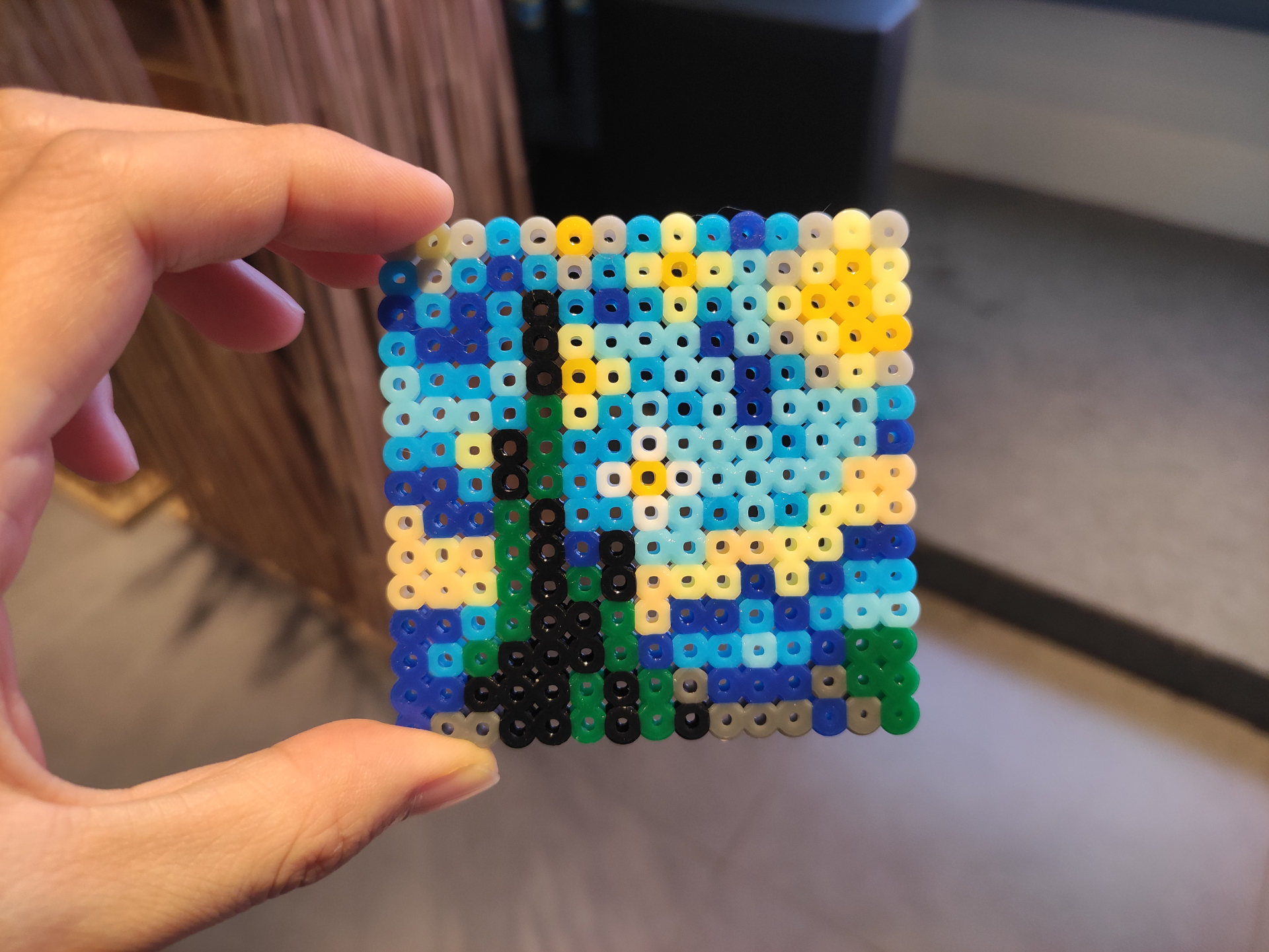 今天(8月21日)下午,一场以“消失不见的名作”为主题的拼豆体验活动,在北京市朝阳门社区文化生活馆举行。当代艺术家熊猫以梵高名作星空为蓝本,设计出空气质量指数(AQI)版星空拼豆作品,用AQI对应的绿色、黄色、橙色、红色、紫色、褐红色替代画面中的蓝色。