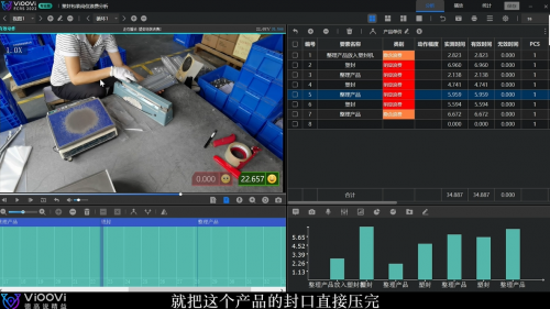 2、标准的装配作业方法。对于流水线的装配作业来说,必须要形成标准、统一的作业方法。因此装配作业指导书需要详细介绍装配作业的方法,便于新员工能快速掌握装配要领,提高作业速度,这对于企业提升效益来说是至关重要的。而标准的装配作业方法也来自于ECRS分析结果。 依然以目前使用比较广泛的VIOOVI 的ECRS工时分析软件为例。通过视频监控,VIOOVI的ECRS软件可分别对同一员工不同时段的工时比较分析或高产量的员工的视频作业分析,从而观测员工的工序流程,输出高效的装配作业方法,用于新员工的作业培训以及改善老员工的作业效率等。