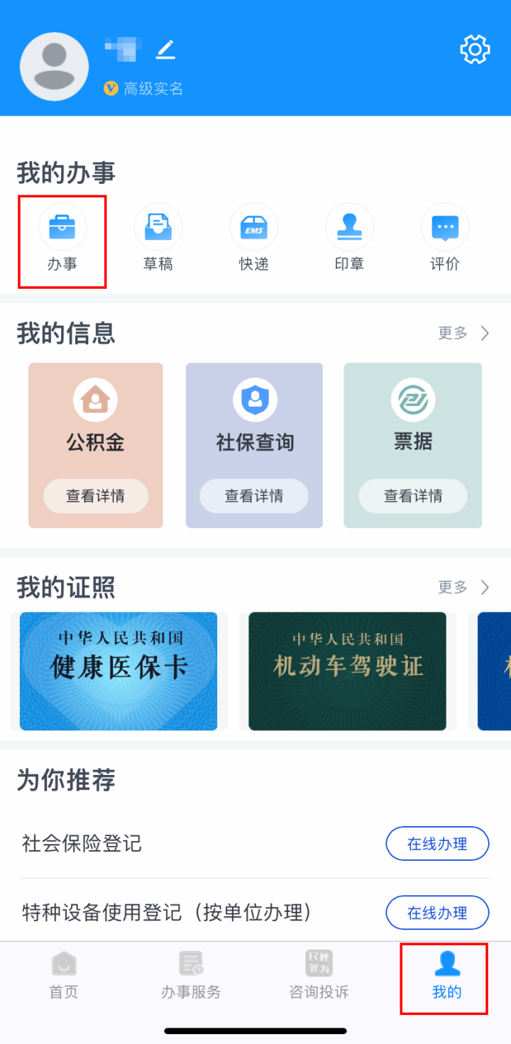 四、成功提交后,可在浙里办“我的”-“办事记录”查询办事进度。