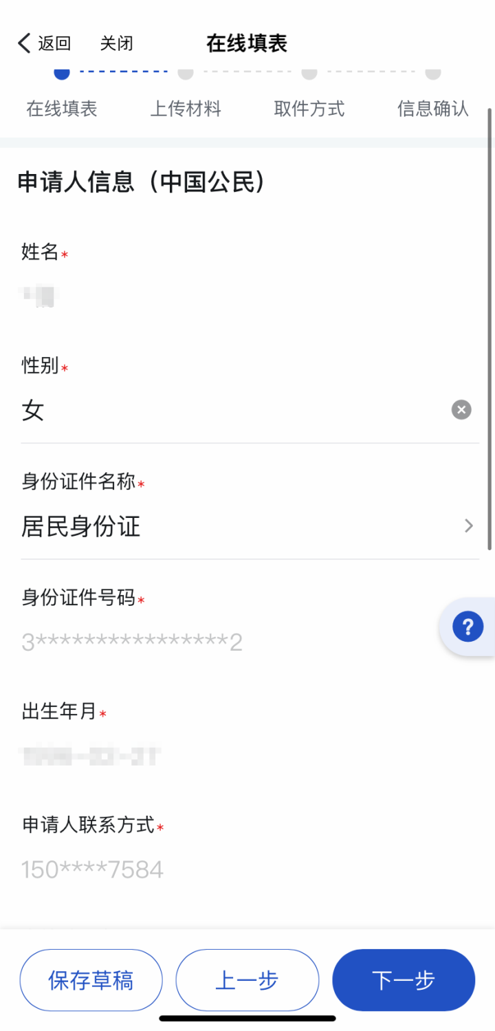 $ ~) m% q5 |$ I4 @2 I 三、按指引填写申请人信息,上传证明资料,确认信息后提交申请。 / @' X* x5 ?) @- H