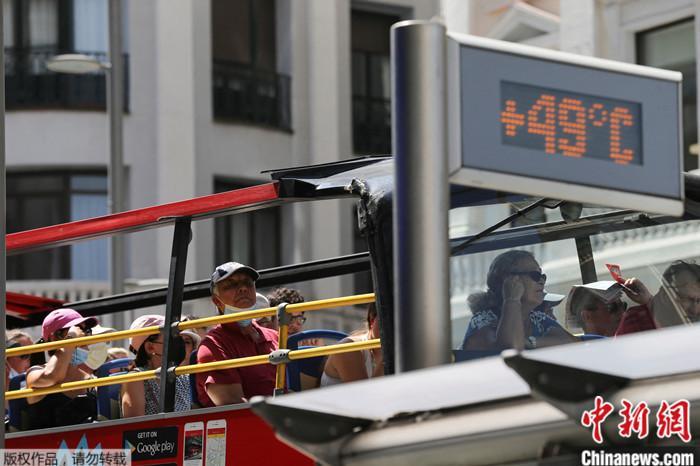 2022年7月15日,西班牙马德里街头的一处温度计的读数。