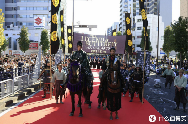 片方安排木村拓哉和伊藤英明两位演员,化身片中所出演角色,在岐阜的信长祭典上骑马出巡。