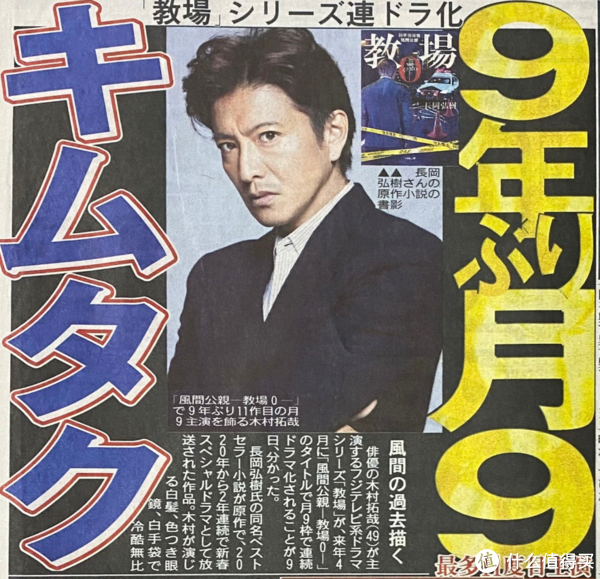 富士电视台公开了明年1月播出的冬季档月9剧的情报,新剧为《风间公亲-教场0-》,木村拓哉担任主演。 4 [1 Q9 A$ R; I( o* T( R