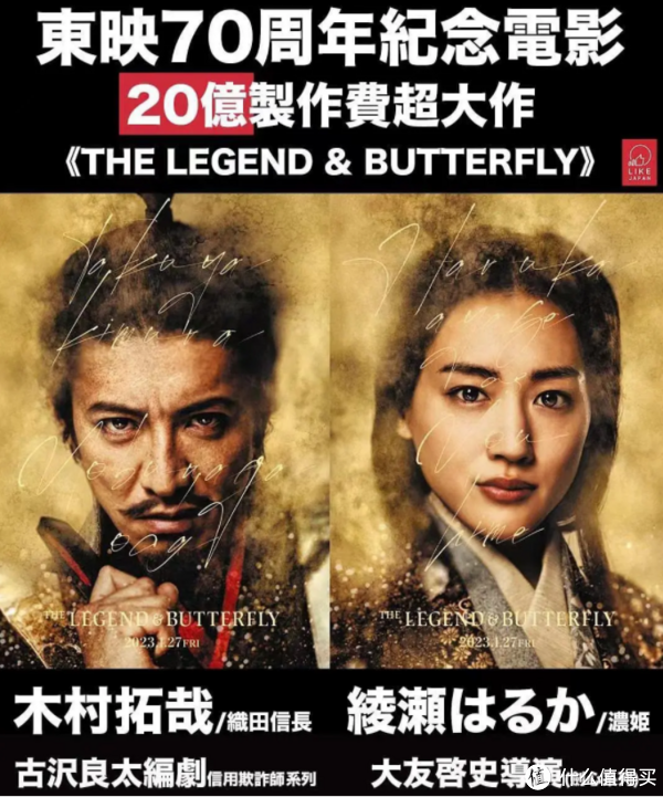 日本知名电影公司东映为纪念成立70周年,拍摄电影《传奇与蝴蝶》(THE LEGEND & BUTTERFLY)作为纪念。 z, @& x: u6 A